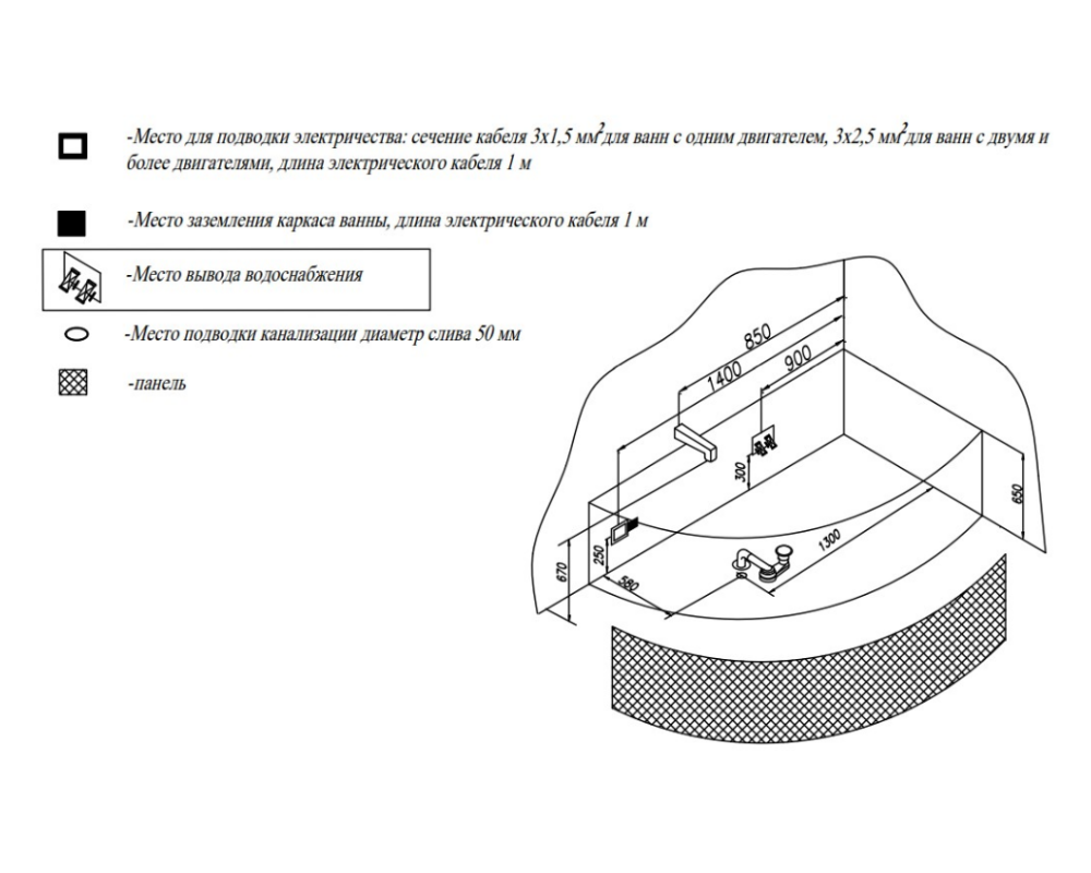 Ванна изготовлена из высококачественного акрила Lucite с толщиной листа не менее 4 мм, имеет безупречный внешний вид и долгий срок службы.