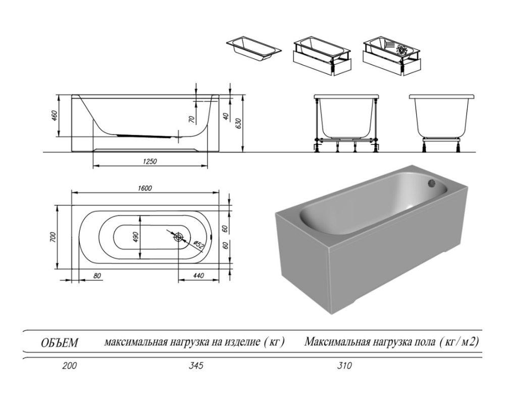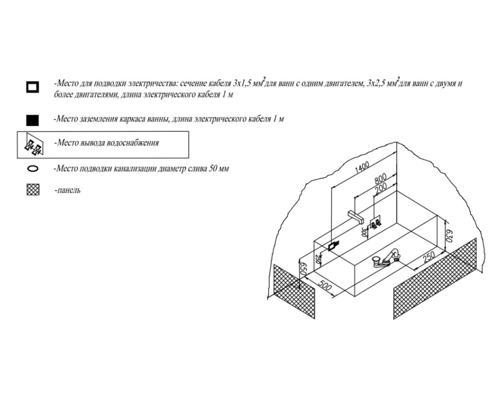 Ванна изготовлена из высококачественного акрила Lucite с толщиной листа не менее 4 мм, имеет безупречный внешний вид и долгий срок службы.