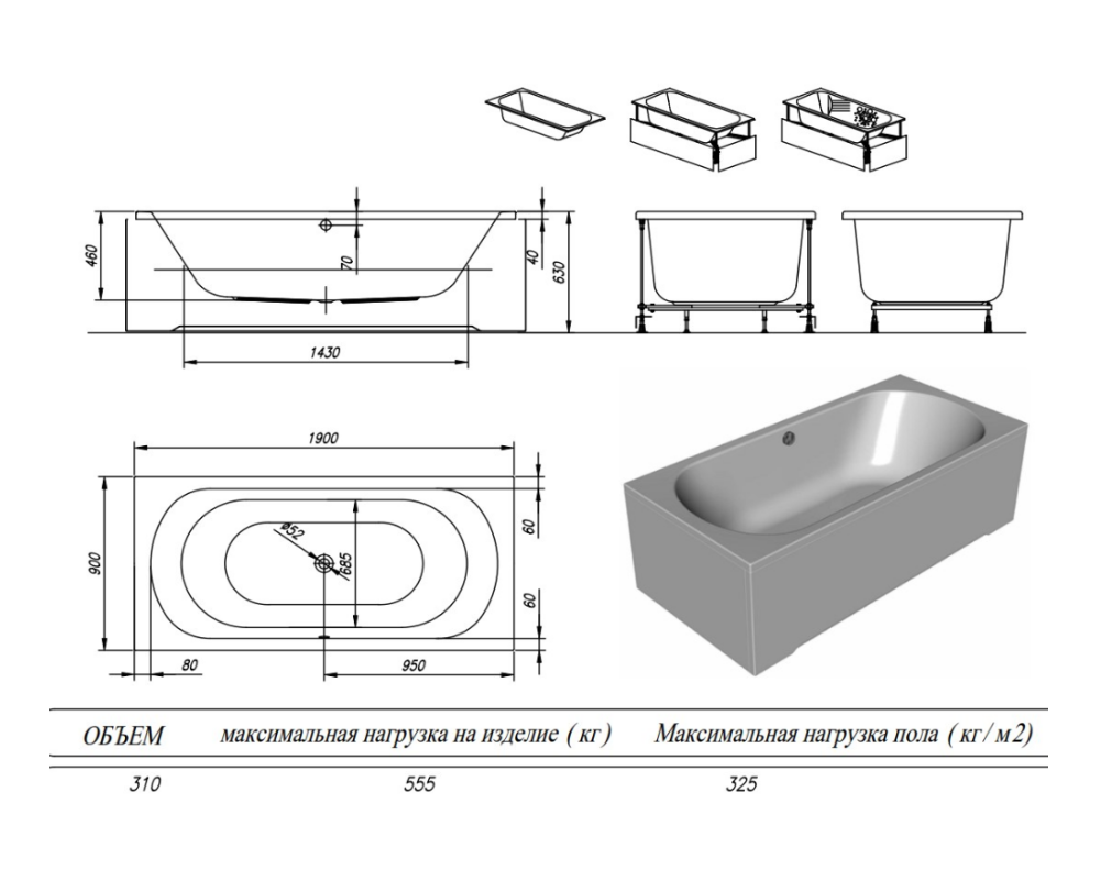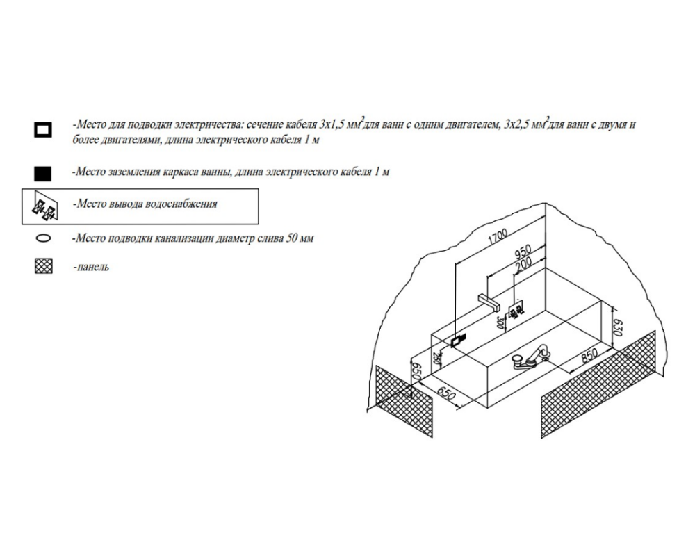 Ванна изготовлена из высококачественного акрила Lucite с толщиной листа не менее 4 мм, имеет безупречный внешний вид и долгий срок службы.