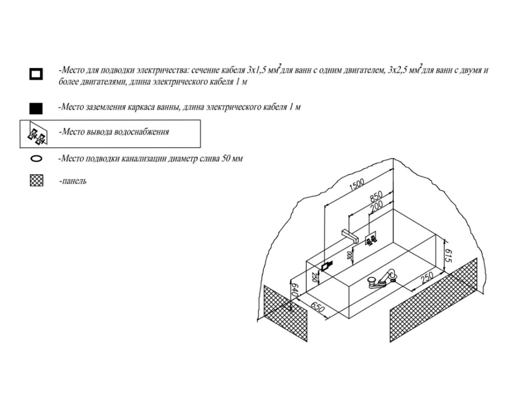 Ванна изготовлена из высококачественного акрила Lucite с толщиной листа не менее 4 мм, имеет безупречный внешний вид и долгий срок службы.