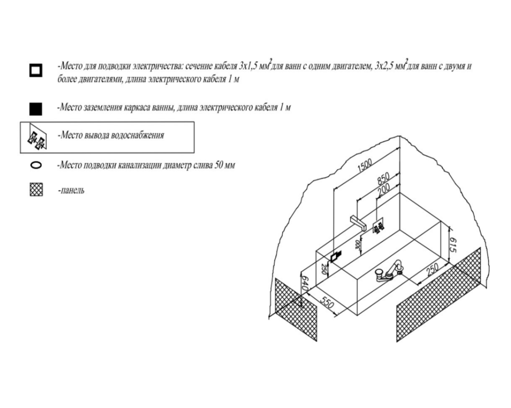 Ванна изготовлена из высококачественного акрила Lucite с толщиной листа не менее 4 мм, имеет безупречный внешний вид и долгий срок службы.