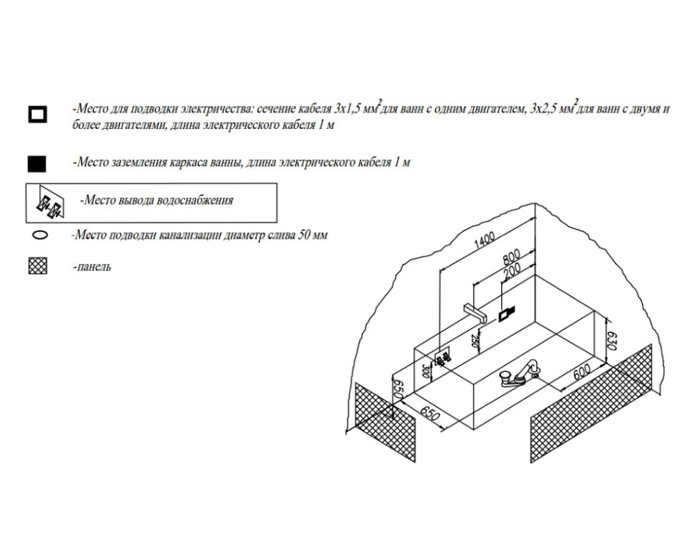 Ванна изготовлена из высококачественного акрила Lucite с толщиной листа не менее 4 мм, имеет безупречный внешний вид и долгий срок службы.