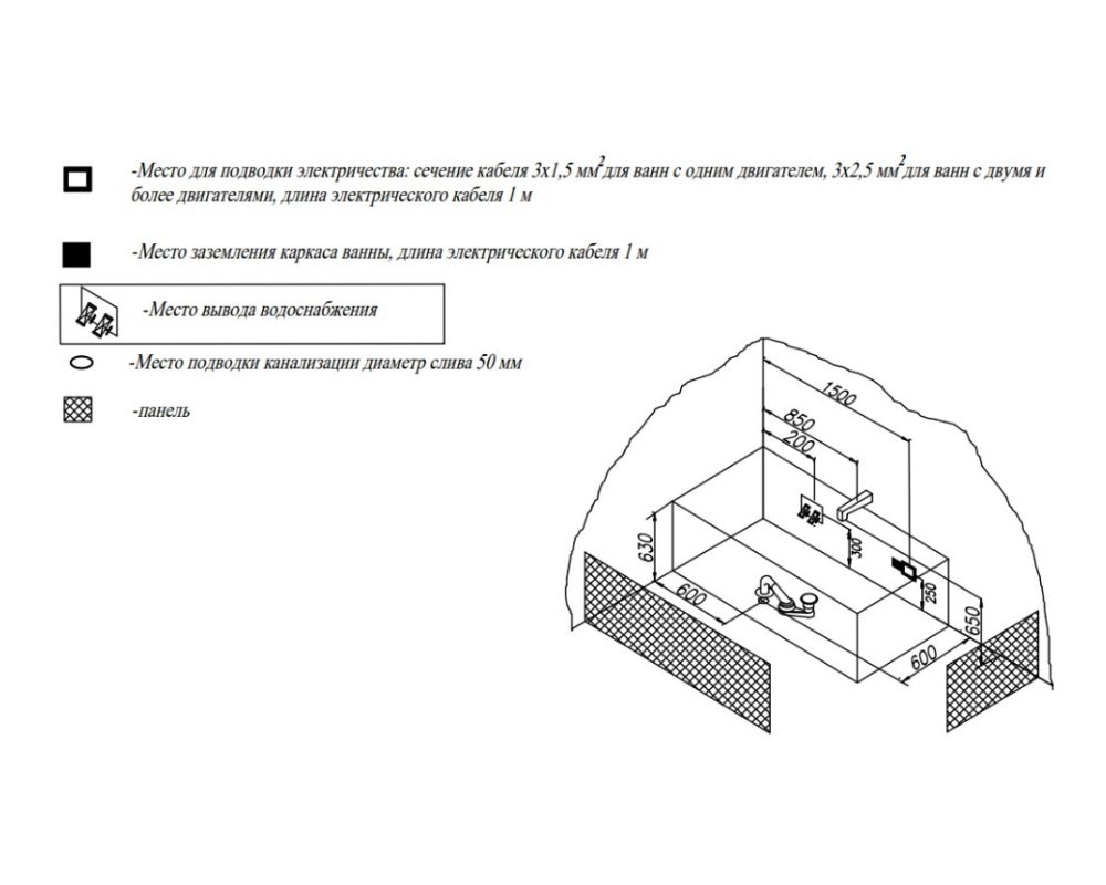 Ванна изготовлена из высококачественного акрила Lucite с толщиной листа не менее 4 мм, имеет безупречный внешний вид и долгий срок службы.
