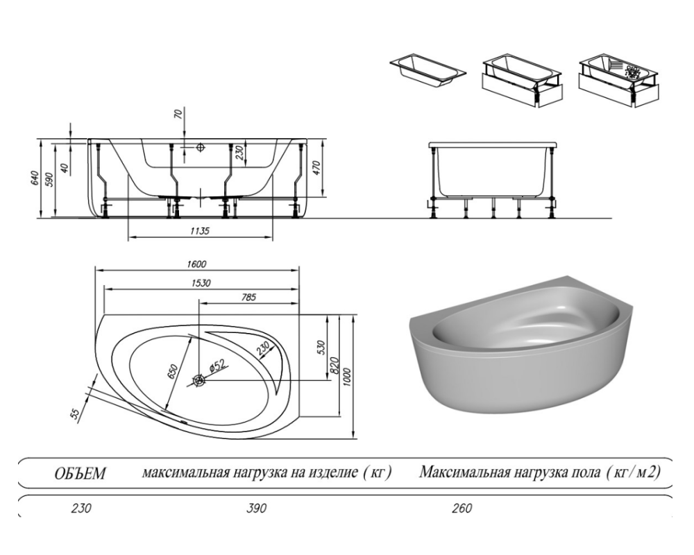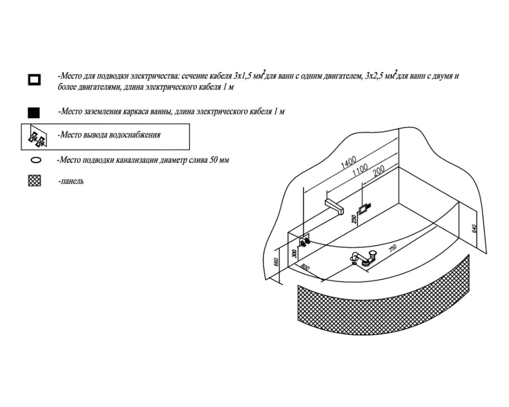 Ванна изготовлена из высококачественного акрила Lucite с толщиной листа не менее 4 мм, имеет безупречный внешний вид и долгий срок службы.