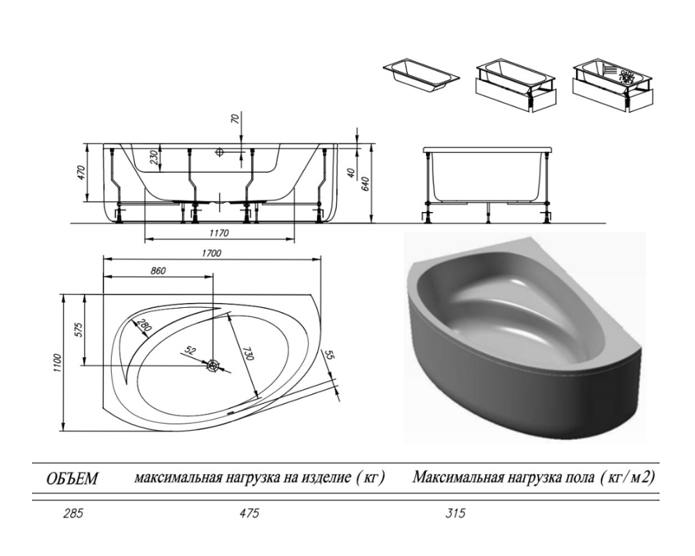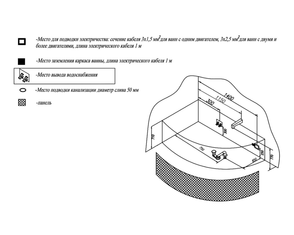 Ванна изготовлена из высококачественного акрила Lucite с толщиной листа не менее 4 мм, имеет безупречный внешний вид и долгий срок службы.