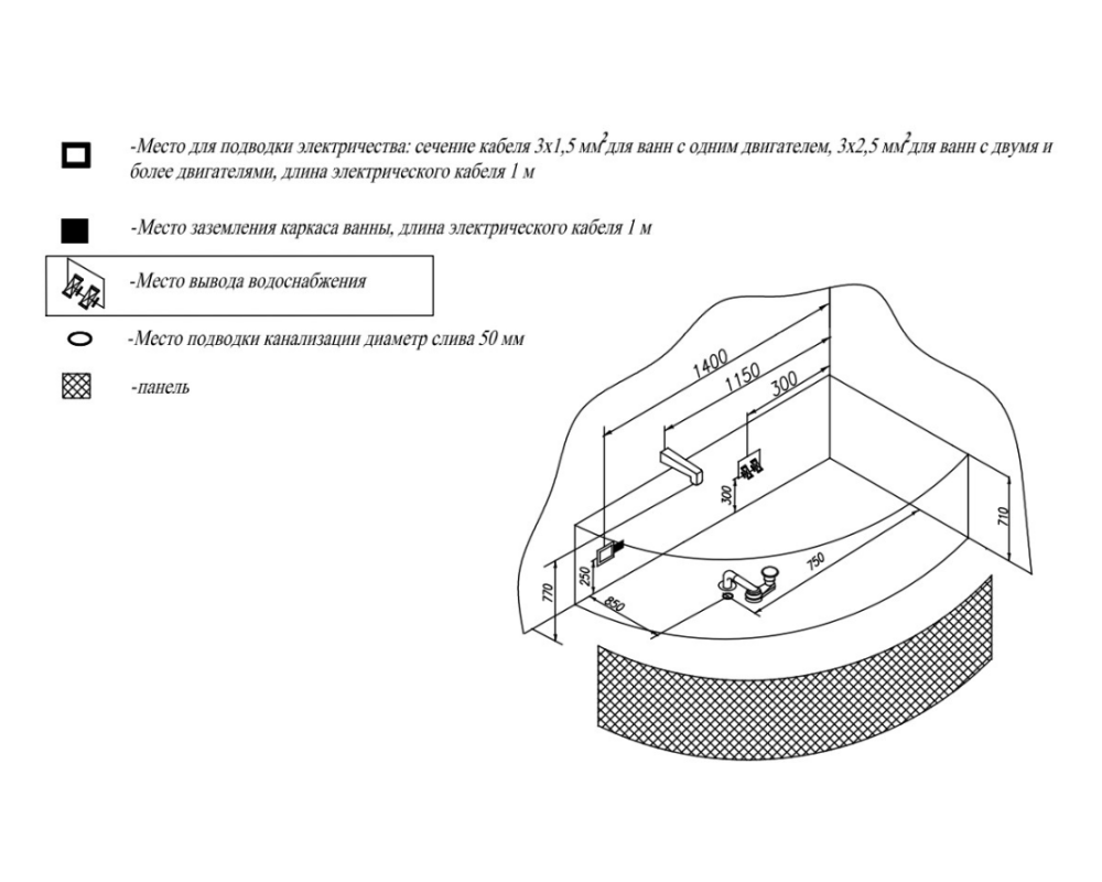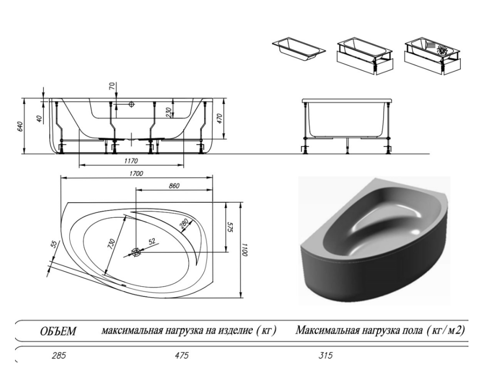 Ванна изготовлена из высококачественного акрила Lucite с толщиной листа не менее 4 мм, имеет безупречный внешний вид и долгий срок службы.
