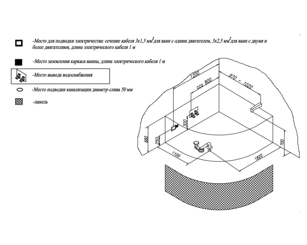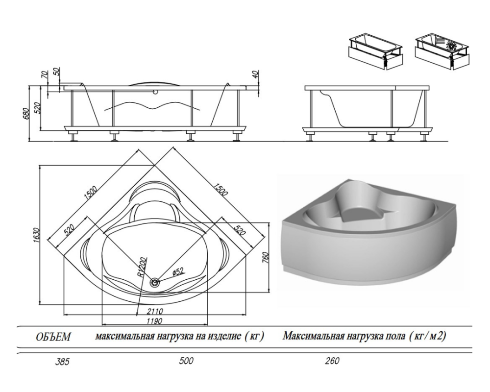 Чаша имеет комфортную глубину 52 см и представлена в едином размере 150х150.
