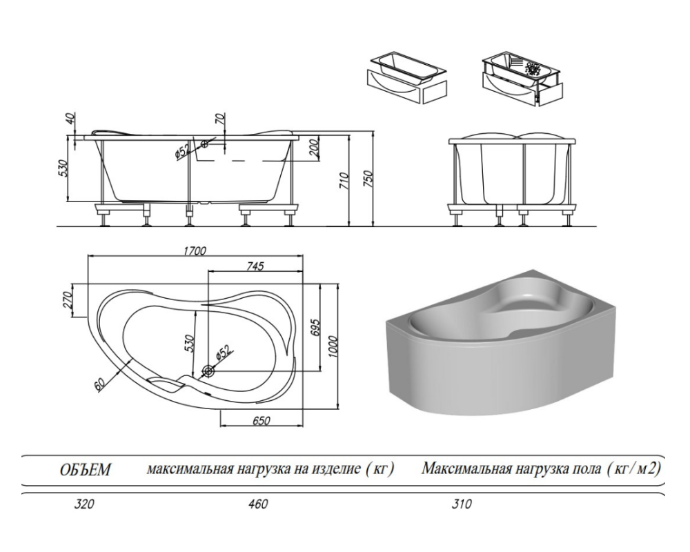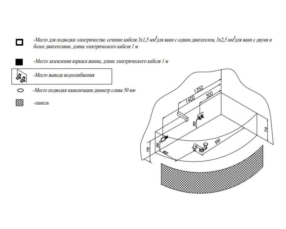 Ванна изготовлена из высококачественного акрила Lucite с толщиной листа не менее 4 мм, имеет безупречный внешний вид и долгий срок службы.