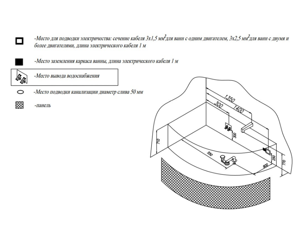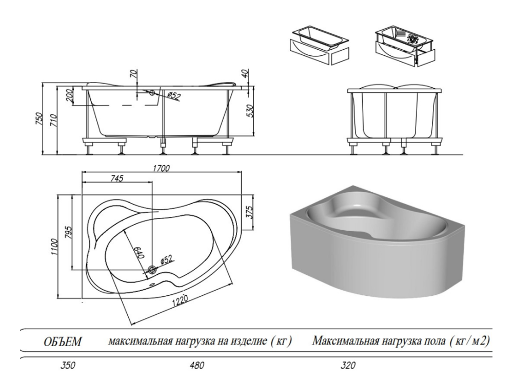Ванна изготовлена из высококачественного акрила Lucite с толщиной листа не менее 4 мм, имеет безупречный внешний вид и долгий срок службы.