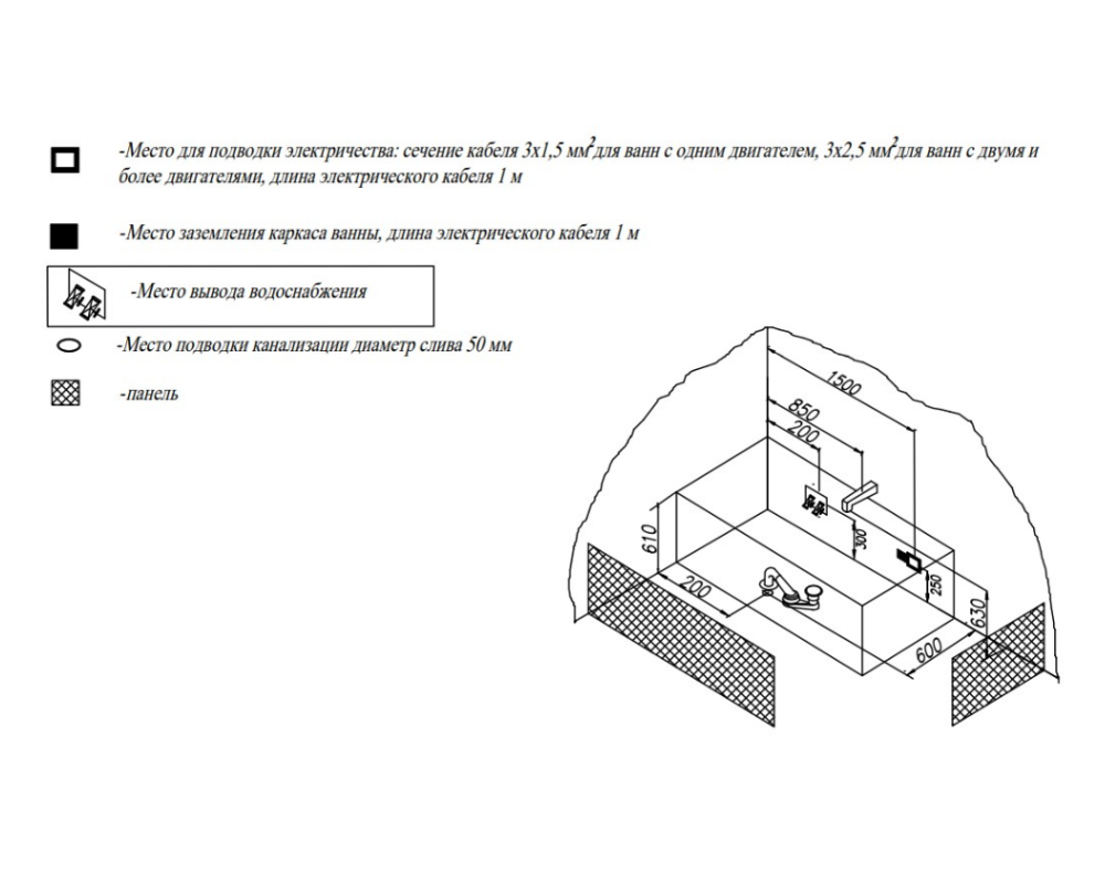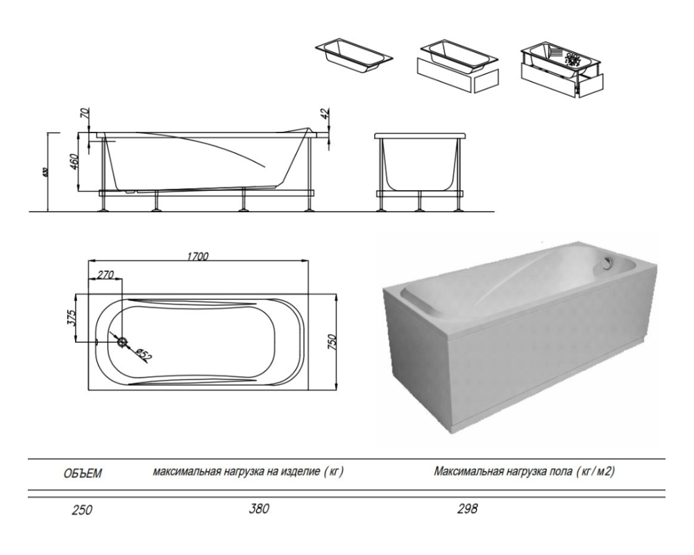 Ванна изготовлена из высококачественного акрила Lucite с толщиной листа не менее 4 мм, имеет безупречный внешний вид и долгий срок службы.