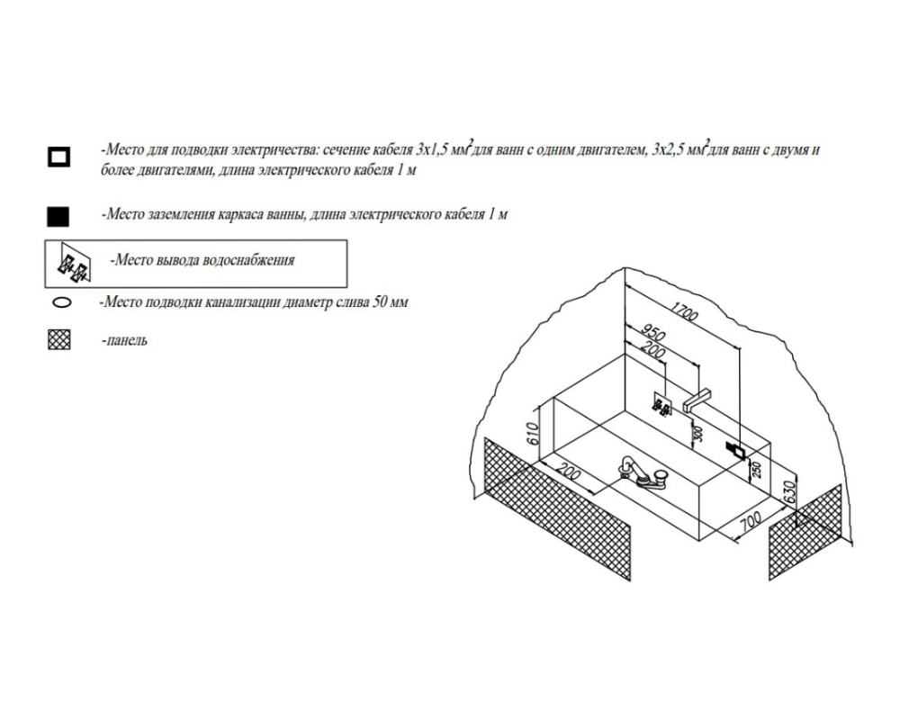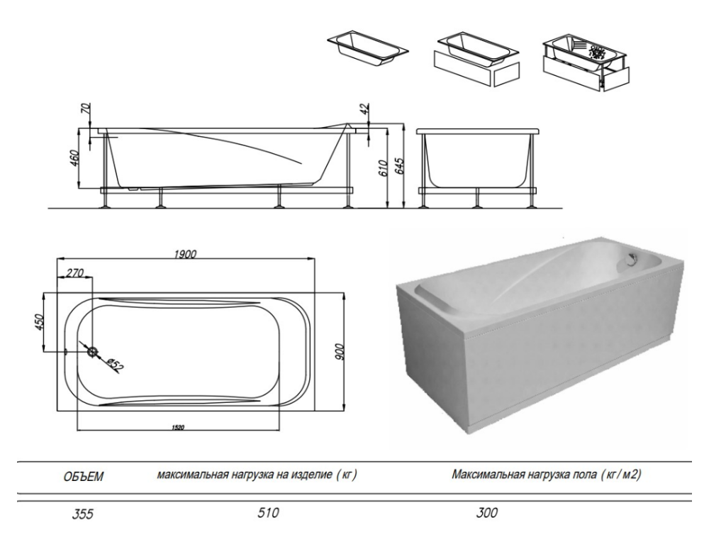 Ванна изготовлена из высококачественного акрила Lucite с толщиной листа не менее 4 мм, имеет безупречный внешний вид и долгий срок службы.